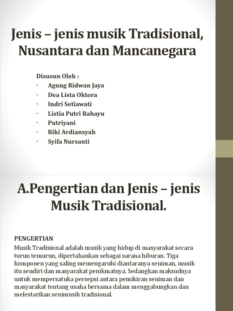 10 permainan tradisional asli indonesia paling populer. Sejarah musik rock dan asal usul hingga dikenal di berbagai dunia. Tugas seni budaya dalam judul musik non tradisional disusun oleh adha yati x.4 guru mata pelajaran seni budaya, dra. Bukan hanya dikenal oleh bangsa indonesia sendiri, tapi alat musik tradisional yang satu ini sudah mendunia. Jenis musik seni tradisional di jepang, yaitu musik seni dan musik rakyat.