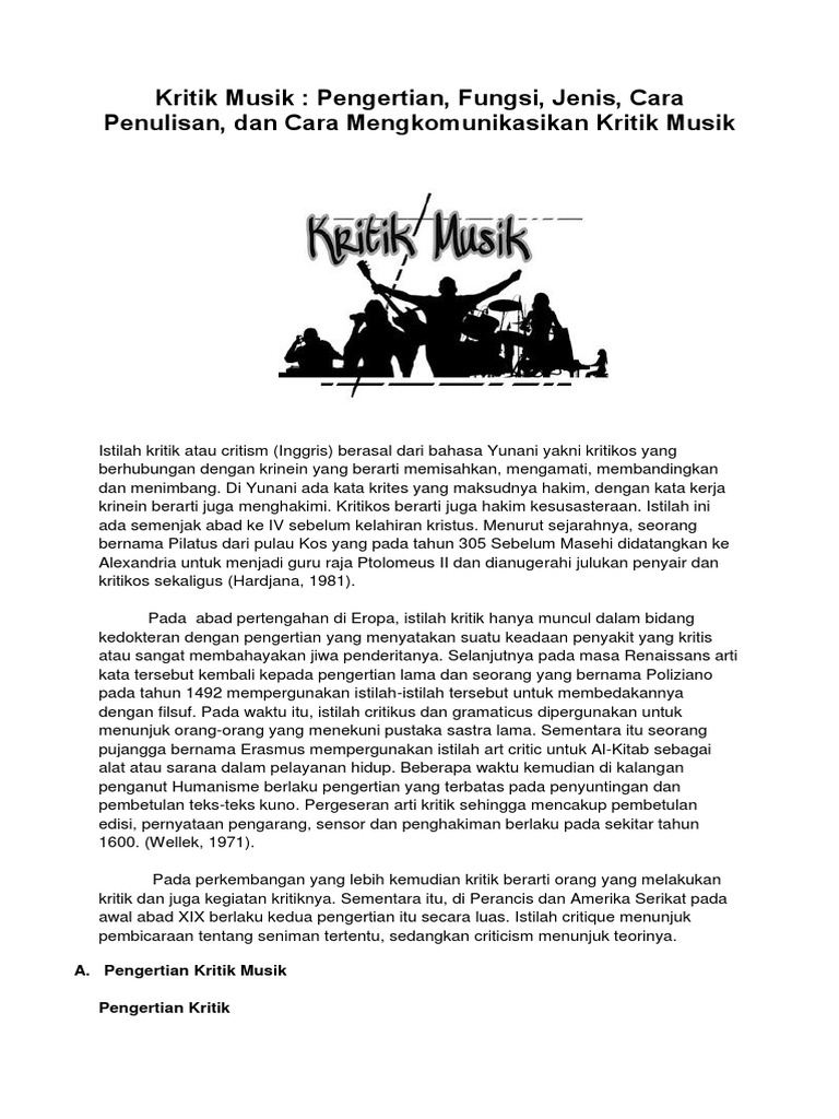 Contoh Kritik Musik Seni Budaya from data03.123dok.com Contoh makalah seni budaya tentang musik barat. Dalam keseharian, kita secara sengaja atau tidak sengaja sering melontarkan kata, kalimat, atau bahasa yang bersifat memberikan tanggapan, komentar, dan penilaian terhadap suatu karya apa pun. Jangan lupa untuk selalu mengikuti protokol kesehatan yang dianjurkan oleh pemerintah, untuk menggunakan masker, menjaga jarak dan mencuci tangan.oiya kakak ada kabar baik nih, kebetulan kakak ingin membagikan kepada adik adik mengenai soal yang kakak susun dari materi perkembangan musik barat mata pelajaran seni. Dalam penyampaiannya, kritik musik bisa dilakukan secara lisan maupun tertulis. Deskriptif analisis interpretasi evaluasi 18. U tahun pembuatan = 2014. Suara mesin ketik yang terus mengiringi lagu jelas mencuri perhatian kita sebagai pendengarnya. Itulah yang dapat kami bagikan terkait contoh kritikan terhadap karya seni lukis.